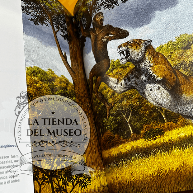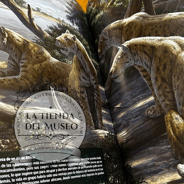 Catálogo de la exposición dientes de sable, es una publicación que, como la exposición temporal de la que surge, invita a descubrir, de forma didáctica, amena y espectacularmente acompañada de las ilustraciones del virtuoso paleoartista, Mauricio Antón, quien también es uno de los comisarios de la exposición, la historia de uno de los carnívoros más impresionantes del pasado: los félidos conocidos como “dientes de sable”.