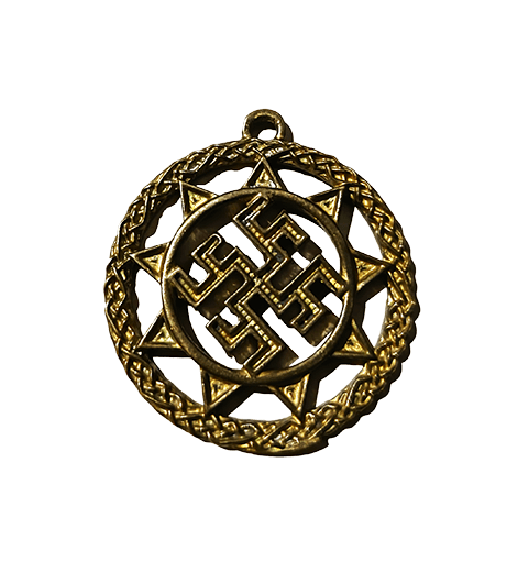 Reproducción artesanal de rueda solar celtíbera en bronce y zamak, sacado de estudios sobre pinturas de cerámicas celtibéricas. Se cree que la rueda solar representa el ciclo de la eterna renovación: nacimiento, crecimiento, vejez, muerte y renacimiento.