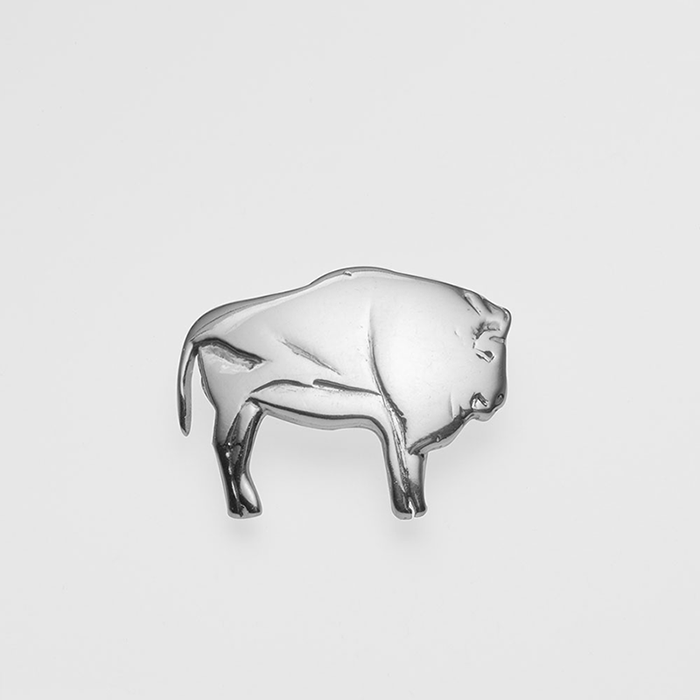 Pin bisonte de Altamira en Plata de Ley. Reproducción artesanal inspirado en una de las pinturas de la Cueva de Altamira, que se encuentra en Santillana del Mar (Cantabria) y que se data aproximadamente de hace 13000 años, del período del Magdaleniense (Paleolítico Superior).